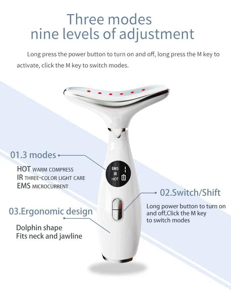 1. Neck beauty device that can be used on both the neck and face to effectively lift and firm the skin, reduce facial wrinkles, fine lines and neck lines, and is designed to give you a swan neck.