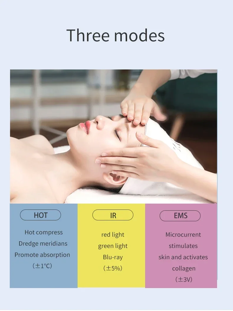 3. Four modes, three intensity adjustments, accelerate blood circulation, promote collagen production, dredge meridians, shrink pores, and rejuvenate the skin.